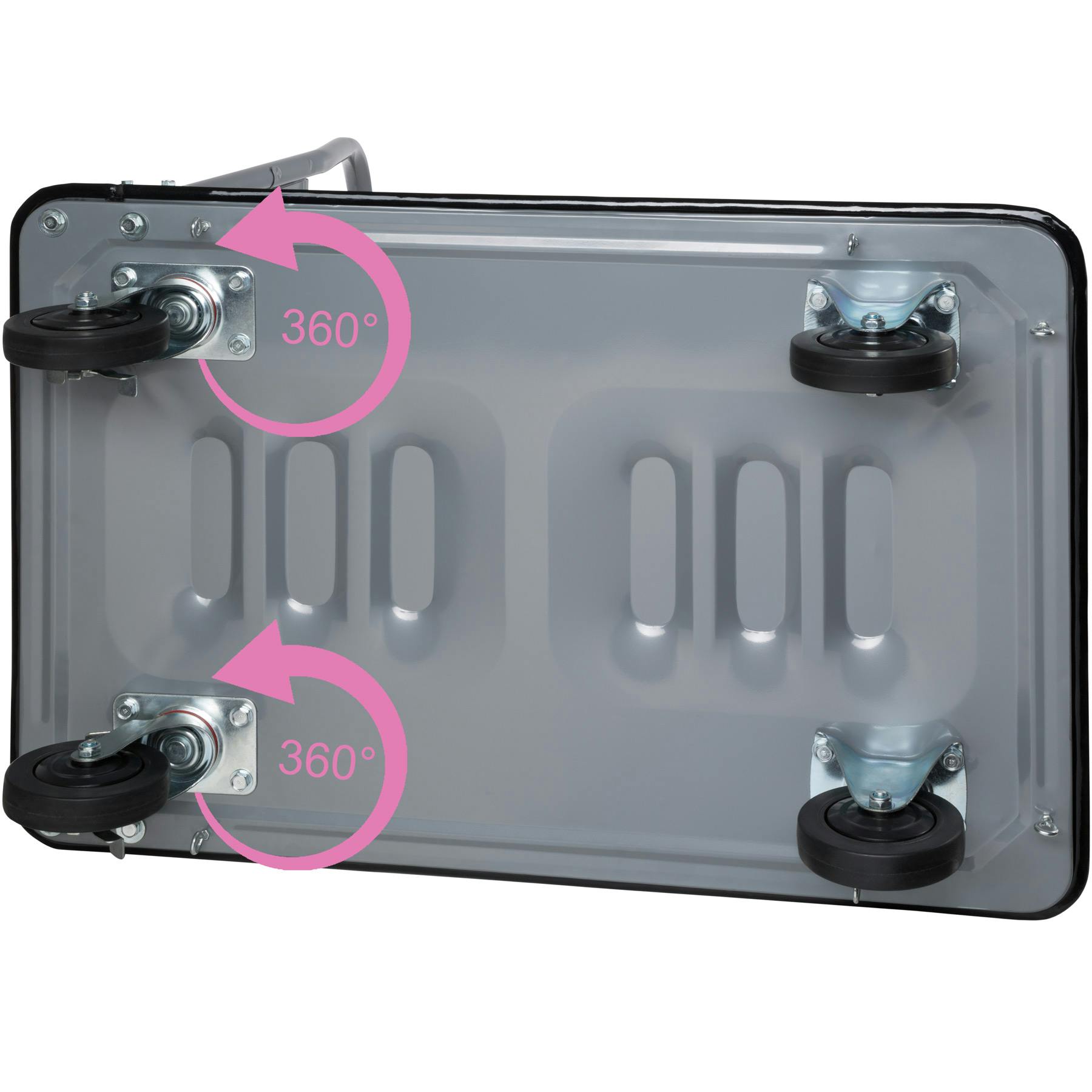 Le chariot noir allie robustesse et praticité pour faciliter le transport d’objets lourds jusqu’à 300 kg. Sa structure en acier résistant, renforcée par des protections en bordure caoutchoutée et une plateforme antidérapante, assure sécurité et stabilité lors de chaque déplacement. Grâce à sa poignée rabattable actionnée au pied et à ses roues mixtes avec freins, il se manie aisément même dans des espaces étroits, puis se range en toute simplicité. Idéal pour les professionnels comme pour les particuliers, ce chariot compact et durable transforme les tâches de manutention en un véritable jeu d’enfant.