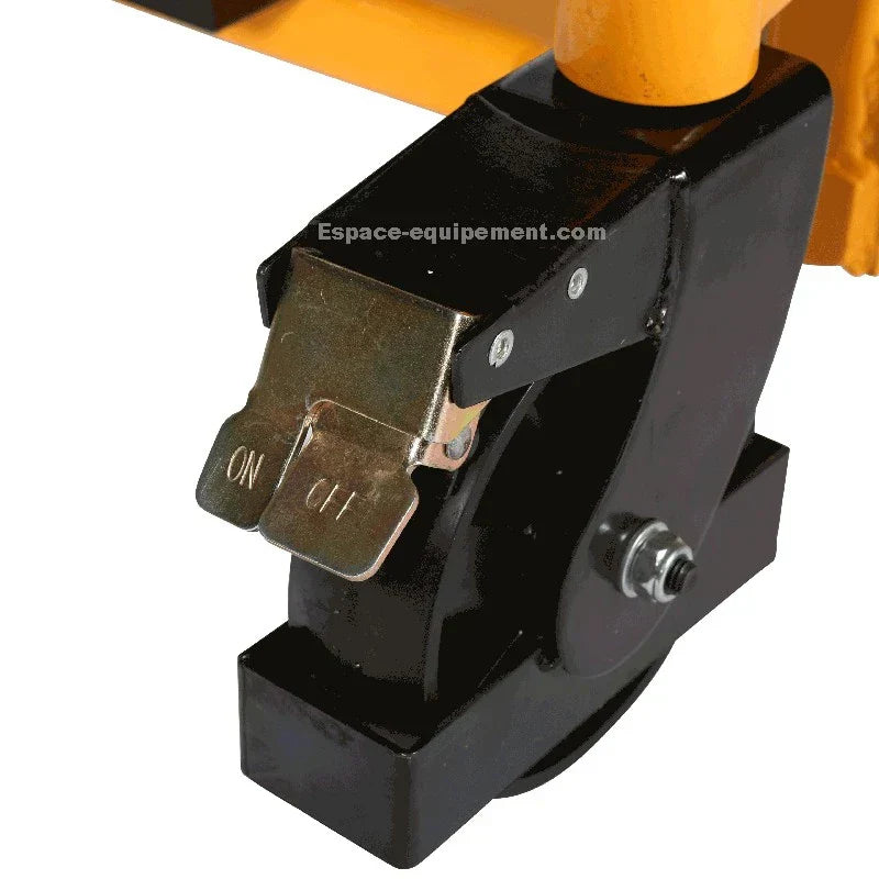 • Commande : Poignée ergonomique avec positions montée, descente et neutre ; commande par levier manuel ou pédale au pied