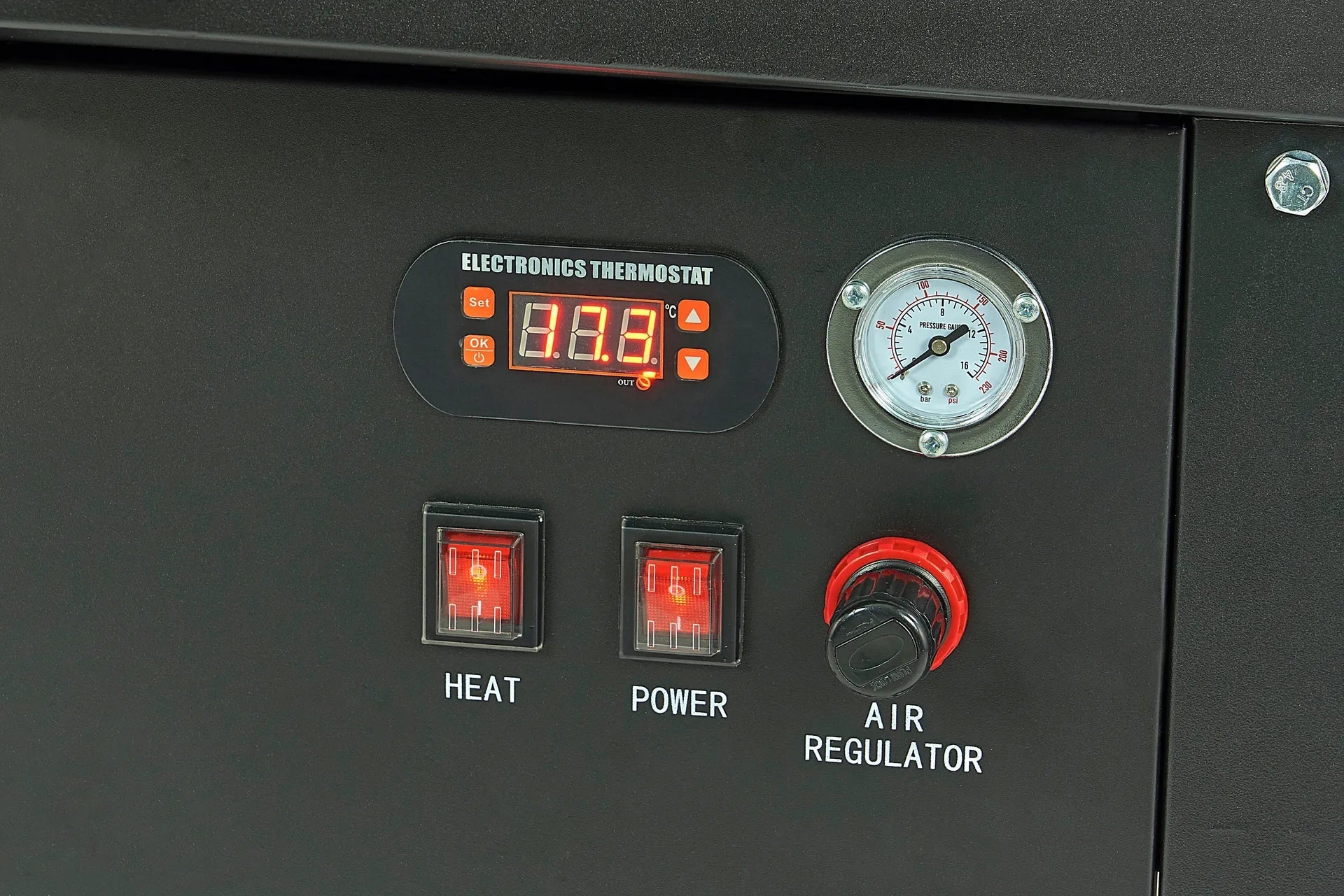 Grâce à son thermostat intégré, la solution de nettoyage peut être chauffée jusqu'à 120°C, garantissant une élimination optimale des graisses tenaces. Sa double fonctionnalité permet un passage fluide entre le lavage à eau chaude et le séchage à air sous pression, offrant ainsi une polyvalence inégalée dans les ateliers.