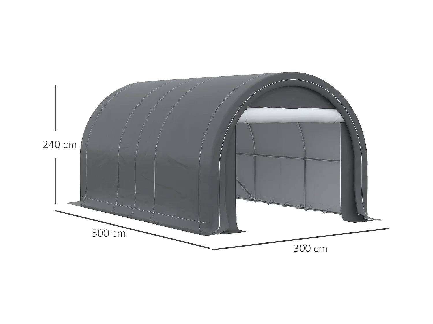 Tente de garage carport 5 x 3 x 2,4 m - Acier galvanisé robuste, PE haute densité 190 g/m², imperméable et anti-UV, gris