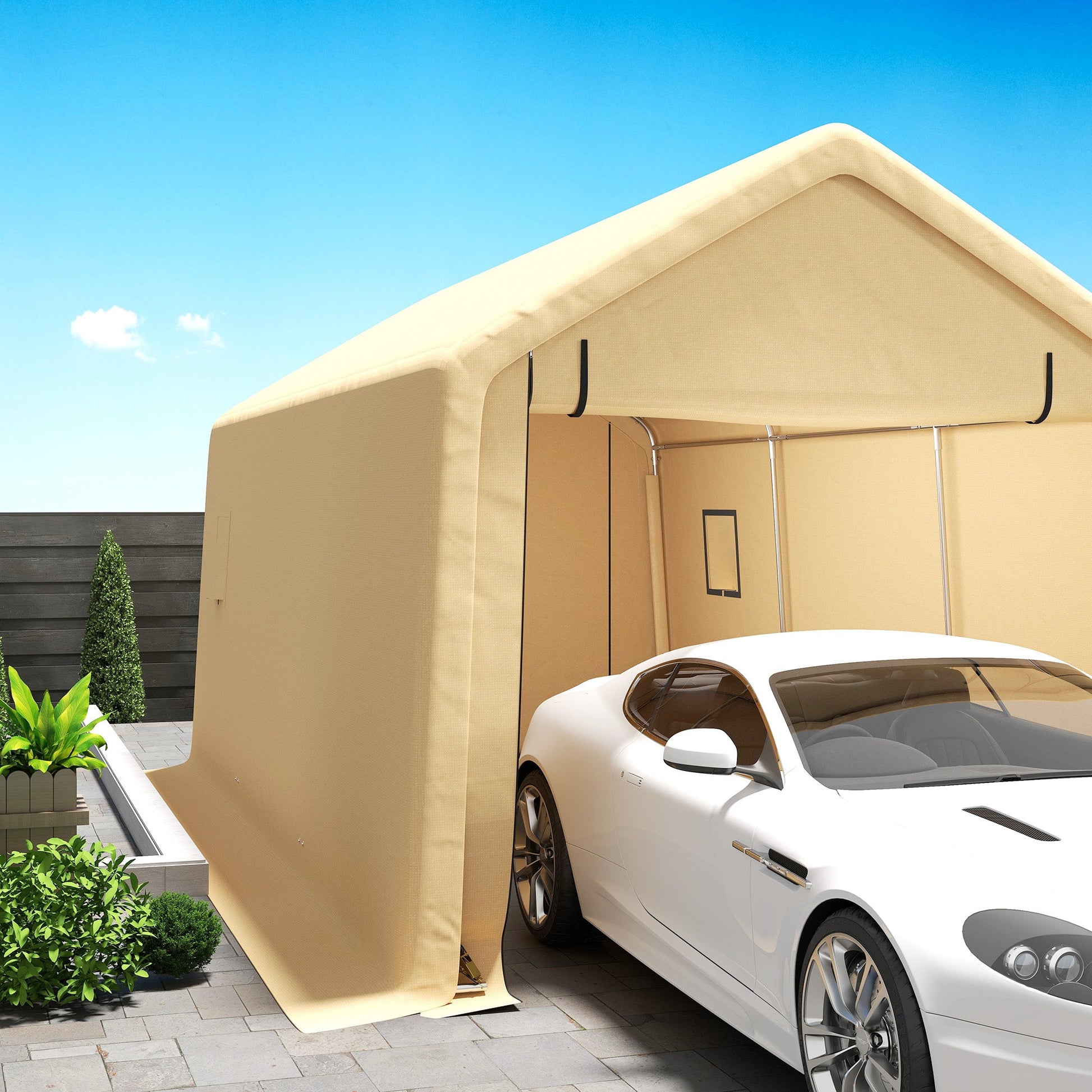 Tente de garage Outsunny 3 x 5,2 m – Abri voiture extérieur avec porte enroulable amovible jaune